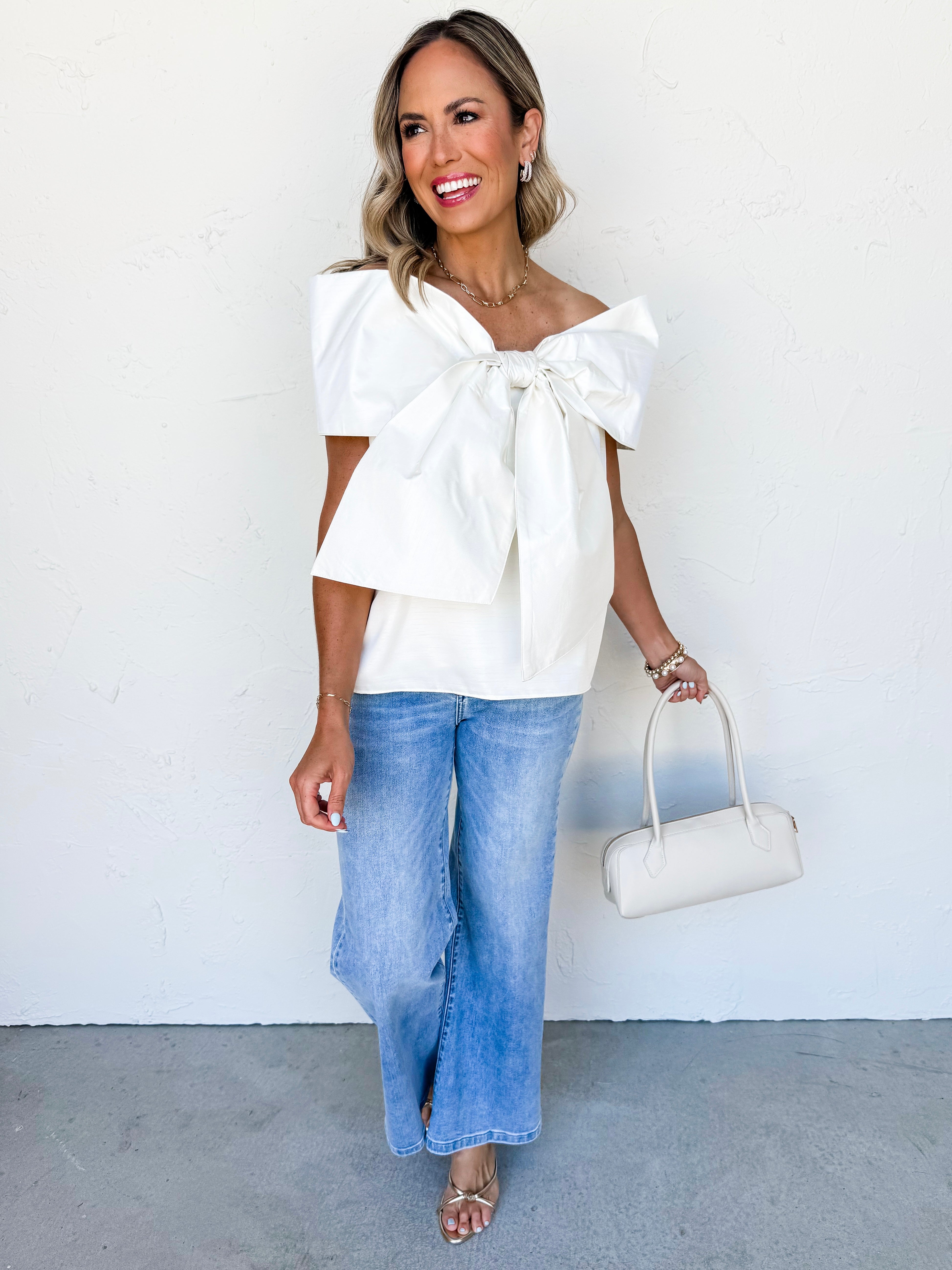 Bowed Beauty Off The Shoulder Top-Ivory